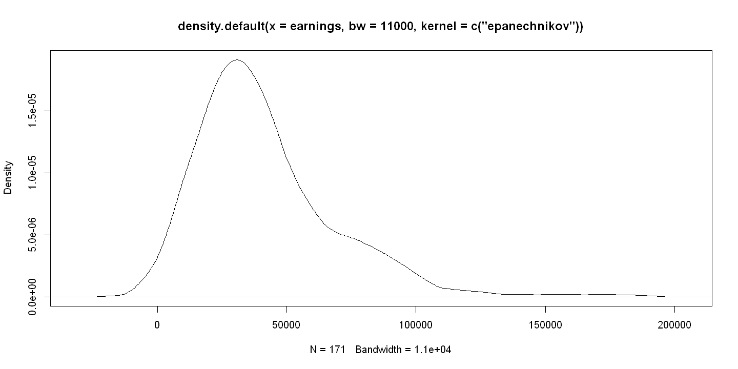 skewness(earnings) #Note no need to write "df$..." now since we've attached the data.