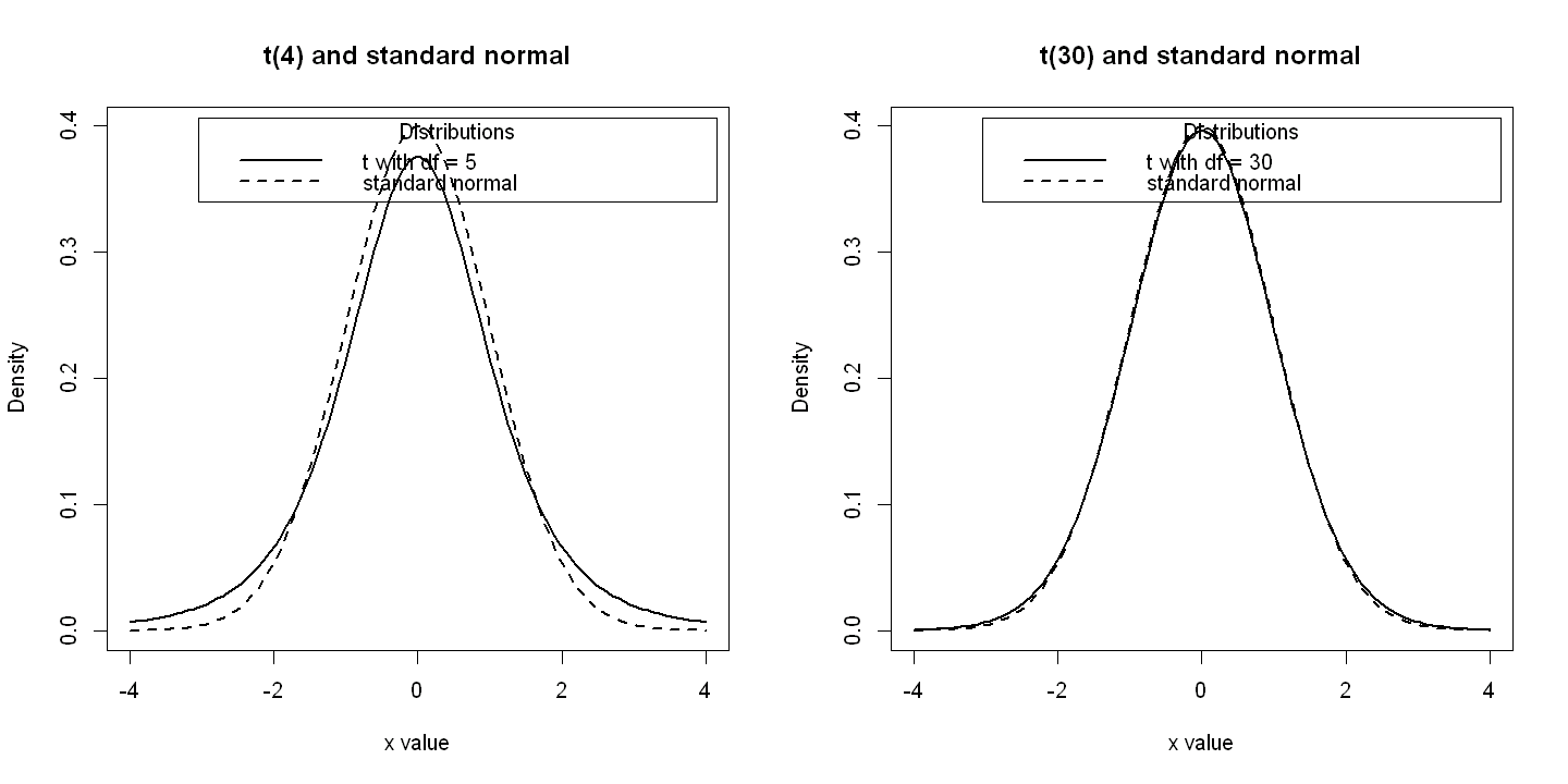 labels <- c("t with df = 30", "standard normal")