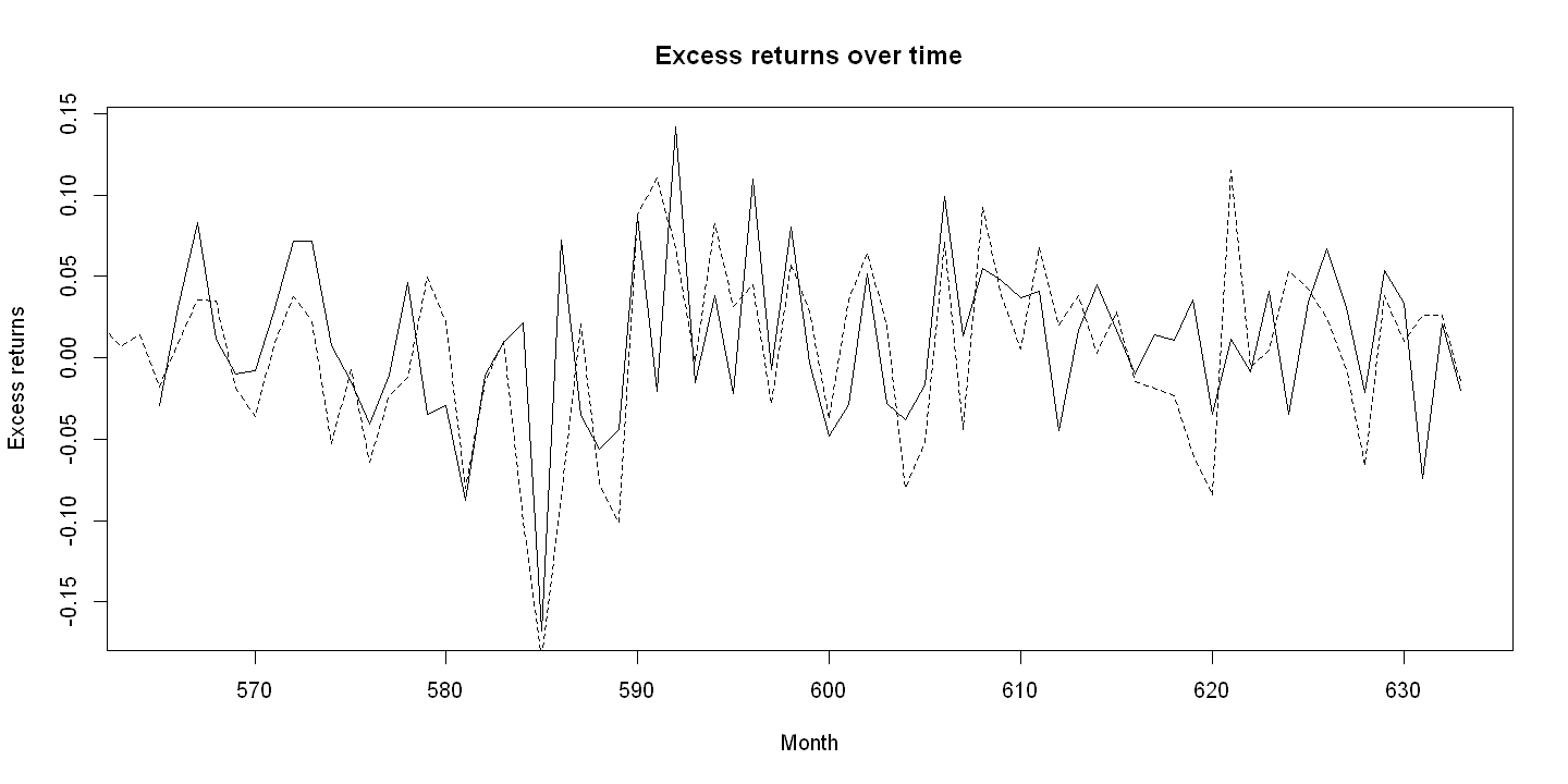 main="Excess returns over time", type="l", lty=1))